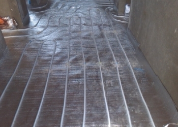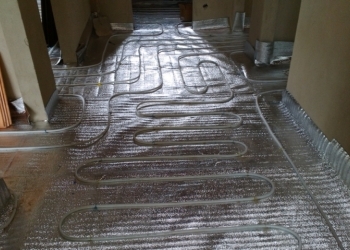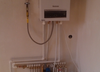 Помимо котлов, мы также монтируем радиаторы отопления от немецкого производителя «Будерус». Радиаторы соединяются с трубами при помощи разъемных резьбовых соединений. Сами трубопроводы являются металлопластиковыми, их поставляет нам корейская фирма «Лавита». Горизонтальные участки труб мы прячем в бетонной стяжке пола, а вертикальные размещаем в стенах. Соединительные муфты при этом не используются, так как этого требуют строительные нормы и правила.