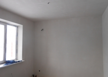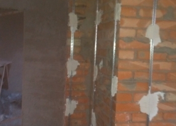 После оштукатуривания стен выполняется их шпатлевание. Для этого мы используем гипсовые смеси. Стены очищаются и обрабатываются грунтовкой, к углам и откосам окон крепятся уголки для защиты профилей от сколов. После нанесения гипсовой смеси стены становятся ровными, и на них можно клеить обои.
